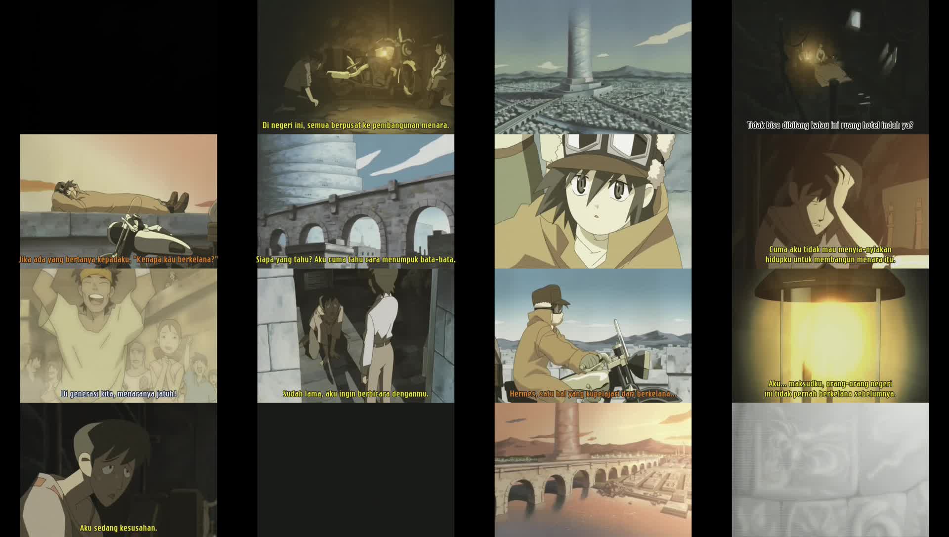 Nonton Anime Kino no Tabi: The Beautiful World – Tou no Kuni – Free Lance Subtitle Indonesia Gratis Full Movie yang menceritakan tentang Bangun dari tidur siang, Kino lega melihat sebuah menara dari jauh masih berdiri dengan gagahnya. Terletak di jantung Negeri Menara, menara yang luar biasa tinggi itu menjulang tinggi ke langit, mencapai ketinggian yang tampaknya tak terbatas. Menara itu tampak seperti sesuatu yang keluar dari mimpi, tetapi konstruksi yang menakjubkan itu benar-benar nyata. Penasaran, rekan seperjalanan Kino dan Hermes—sepeda motor yang bisa berbicara—pergi ke menara untuk melihat lebih dekat bangunan itu.