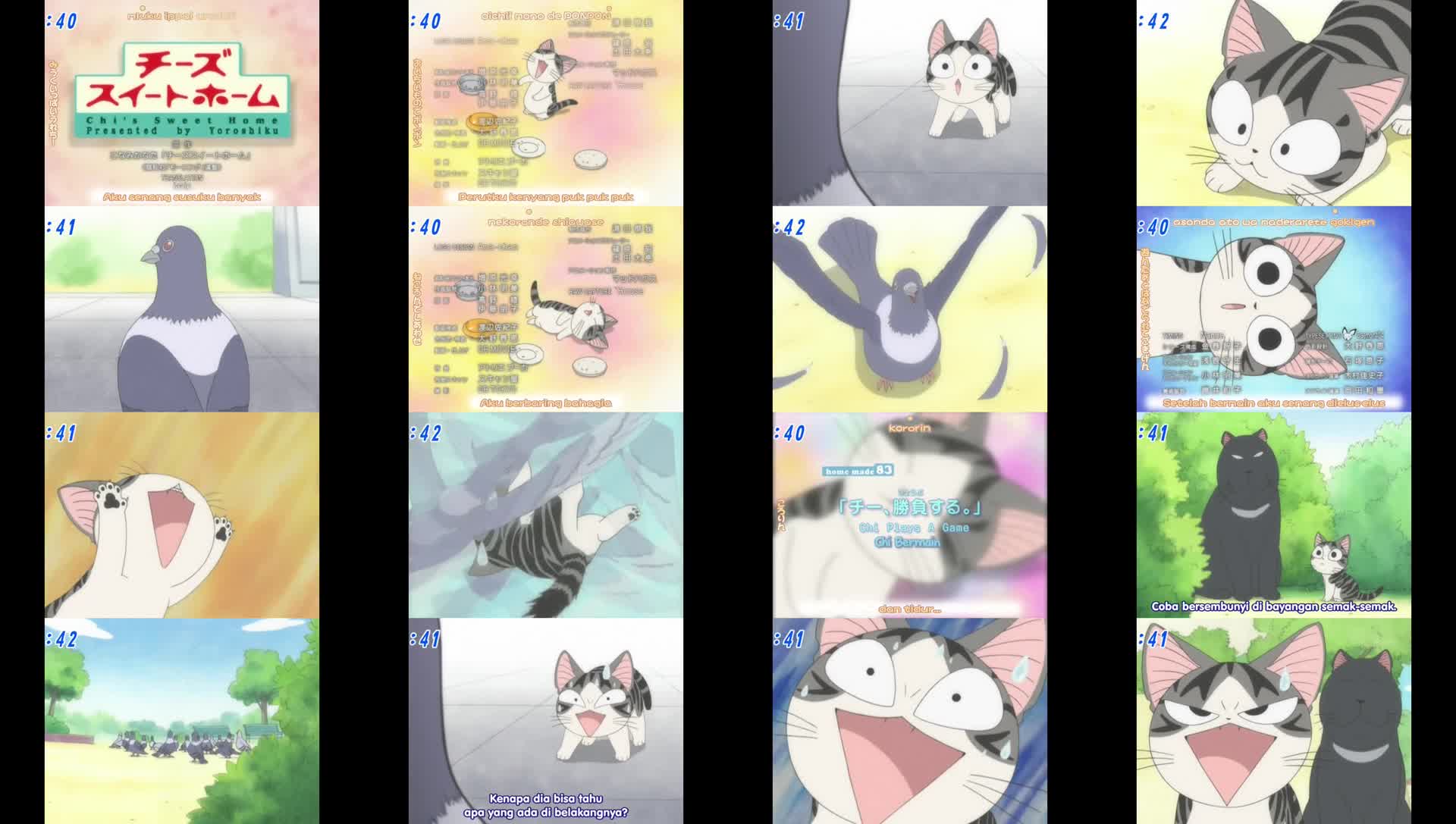 Nonton Anime Chi’s Sweet Home Episode 83 Subtitle Indonesia Gratis Full Movie yang menceritakan tentang Chi mengejar merpati sementara kucing beruang hitam menonton tetapi dia tidak dapat menangkap satu pun. Setelah ditertawakan oleh seekor merpati, kucing beruang hitam menyuruh Chi menyelinap ke arah merpati menggunakan semak-semak.