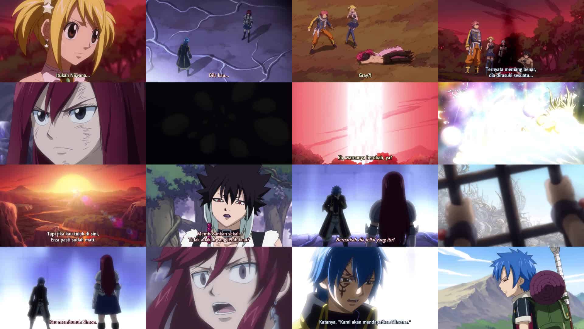 Nonton Anime Fairy Tail Episode 59 Subtitle Indonesia Gratis Full Movie yang menceritakan tentang Meskipun Angel dikalahkan, Lucy dan Natsu akhirnya jatuh ke air terjun raksasa; ketika mereka sadar kembali, mereka diserang oleh Sherry, yang dihentikan oleh Gray dan Lyon. Wendy mengungkapkan kepada Charle masa lalunya tentang Jellal dan bagaimana dia datang ke Cait Shelter. Sementara itu, Erza menemukan Jellal yang amnesia di lokasi Nirvana; Jellal mengungkapkan bahwa dia menempatkan mantra penghancur diri pada Nirvana, yang tidak dapat dihilangkan oleh penyihir Oración Seis Cobra. Melihat rasa sakit yang telah ditimbulkannya pada Erza, Jellal menempatkan sihir penghancur diri pada dirinya sendiri.