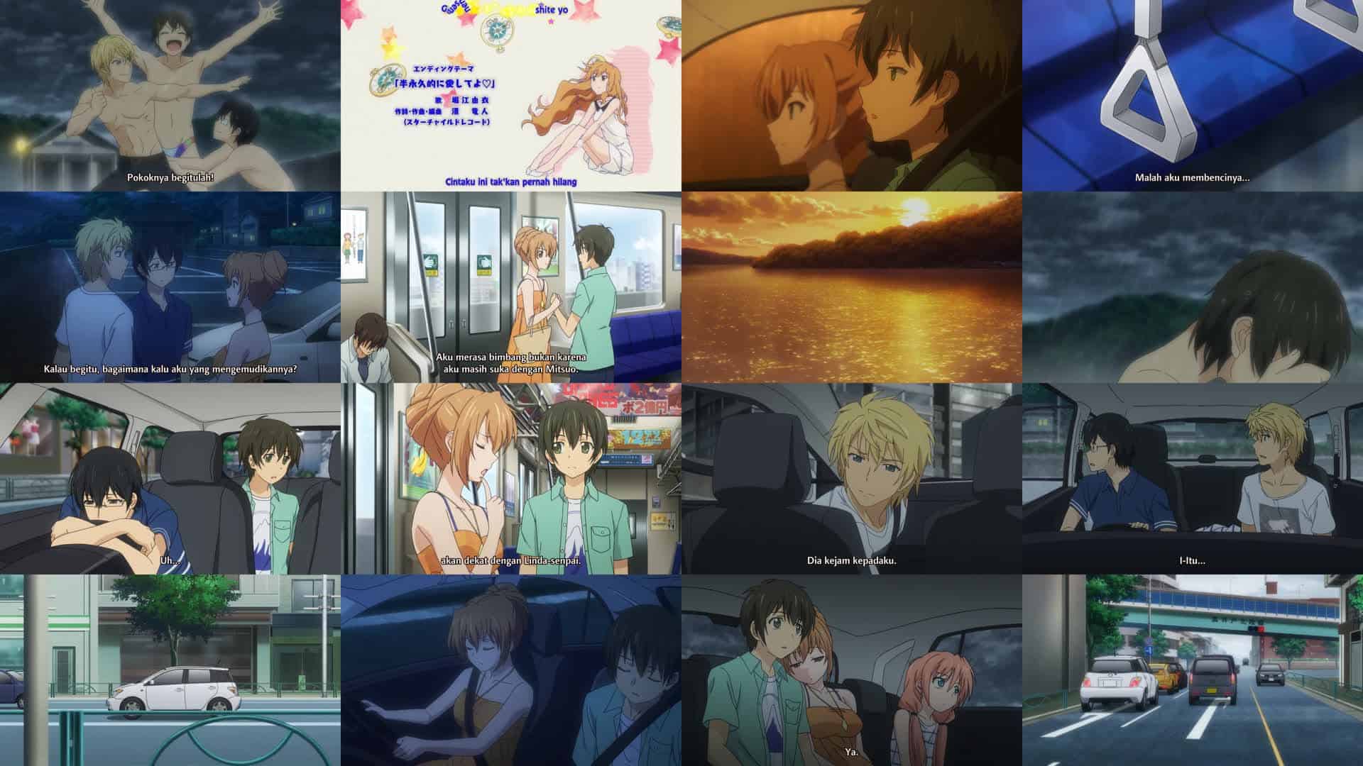 Nonton Anime Golden Time Episode 15 Subtitle Indonesia Gratis Full Movie yang menceritakan tentang Pada hari perjalanan ke pantai, kelompok tersebut mengalami beberapa kecelakaan dalam perjalanan. Dimulai dengan Kōko dan Banri bertemu Nijigen di tempat yang salah, dan keterlambatan dalam menjemput Chinami dan Mitsuo. Lalu lintas yang padat memperlambat perjalanan mereka keluar dari kota. Hujan turun meskipun ramalan cuaca berlawanan. Kelompok tersebut tiba di tengah hujan badai. Karena ingin menggunakan kamar kecil, Kōko keluar dari mobil dengan pakaian renangnya, dan anggota kelompok lainnya mengikutinya. Hujan berhenti dan kelompok tersebut menikmati hari pantai mereka. Karena Nijigen merasa lelah, Kōko malah menyetir mobil pulang. Di tengah perjalanan, Banri tertidur meskipun telah berusaha sekuat tenaga untuk tetap terjaga. Tak lama kemudian, Kōko menjadi lelah dan tertidur di belakang kemudi. Beberapa saat sebelum mobilnya kehilangan kendali, Banri terbangun dan menginjak rem, menyebabkan mobil berhenti total setelah menabrak pagar pembatas.