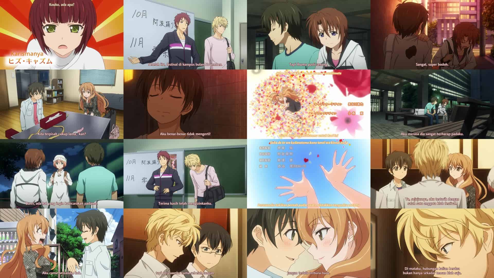Nonton Anime Golden Time Episode 19 Subtitle Indonesia Gratis Full Movie yang menceritakan tentang Banri membahas kejadian hantu Banri jatuh dari jembatan dengan seorang dokter, yang tidak dapat berbuat apa-apa selain memberikan obat penenang untuknya. Dalam perjalanan kereta kembali ke Tokyo, Banri ingat bagaimana hantu Banri mencoba mengambil alih tubuhnya sebelumnya dan sekarang bertanya-tanya mengapa hantu Banri menyerah. Ketika Banri kembali ke Tokyo, dia ingat bagaimana ibunya memberinya cincin dari masa mudanya untuk diberikan kepada pacarnya, tetapi Kōko dan yang lainnya menemuinya sebelum dia dapat memikirkannya lebih lanjut. Malam itu mereka mengadakan makan malam untuk Banri, dan dia memperhatikan bahwa Chinami telah memotong rambutnya. Mitsuo kemudian meminta bantuan Kōko dan Banri untuk memfilmkan Festival Club dalam upaya untuk lebih dekat dengan Linda. Kemudian Banri dan Mitsuo berbicara tentang bagaimana mereka tahu tentang Mitsuo dan Linda, dan Mitsuo menghadapi Banri tentang masa lalunya dengan Linda, tetapi sementara Banri mempertimbangkan untuk menjawabnya dengan jujur, Mitsuo mundur. Kembali ke apartemen Banri, hanya ada Banri dan Kōko. Banri meminta maaf kepada Kōko karena telah memecahkan cermin persahabatan mereka, lalu mempertimbangkan dampak dari memberikan cincin ibunya kepada Kōko. Sebelum Banri dapat melakukan apa pun, Kōko memberinya sebuah karya seni yang dibuatnya untuk Banri, lalu mengatakan kepadanya bahwa dia menginginkan “Malam di Paris” mereka sekarang. Namun, beberapa hal menghalangi, dan tidak ada yang terjadi. Kōko menyadari bahwa dia bisa menjadi dirinya sendiri bersamanya dan menyadari bahwa Banri benar-benar mencintainya sekarang. Lama kemudian, Mitsuo mendapat izin untuk merekam Festival Club, tetapi Linda tidak senang dan Mitsuo tidak pernah mendapat kesempatan untuk berbicara dengan Linda. Setelah itu, Linda menunjukkan bahwa dia ingin berbicara dengan Banri dan Kōko pergi untuk mengalihkan perhatian Mitsuo sementara itu. Linda dan Banri berdebat tentang kedatangan Mitsuo ke klub, dan mereka akhirnya membahasnya dengan tenang di kemudian hari. Linda mengungkap makan malam mereka bersama, tetapi juga bagaimana dia tidak bisa begitu saja menerima ketertarikan Mitsuo padanya dan menjaga jarak darinya, itulah sebabnya mereka bertengkar. Saat mereka berbicara, Chinami datang untuk berbicara dengan Banri tentang keramahannya dengan Linda dan bagaimana hal itu tidak pantas.