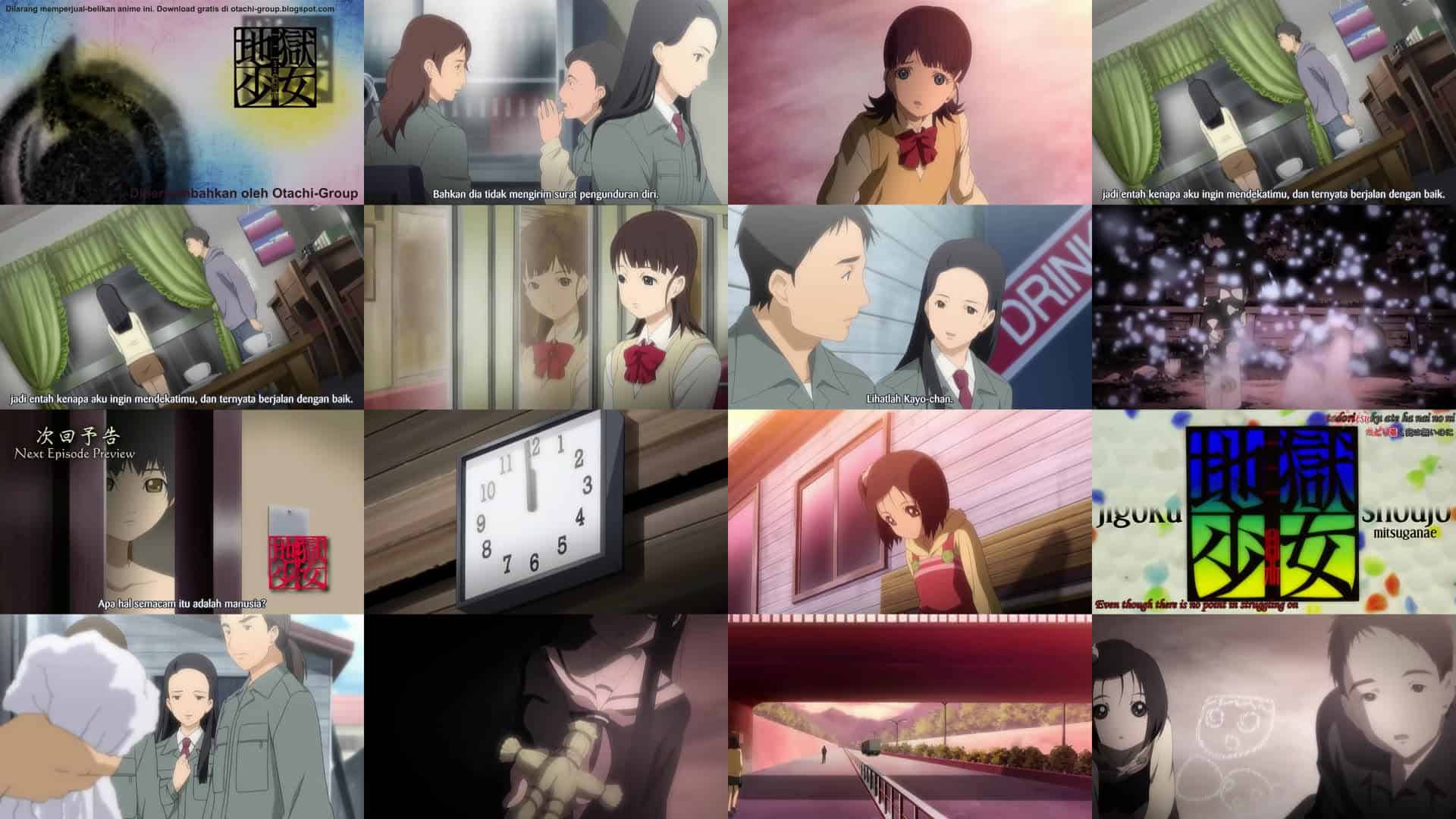 Nonton Anime Jigoku Shoujo Mitsuganae Episode 16 Subtitle Indonesia Gratis Full Movie yang menceritakan tentang Yuzuki merasakan seorang pria hendak menarik tali salah satu boneka jerami Ai. Saat ia bergegas menghentikannya, Ai mengatakan bahwa usahanya sia-sia. Ia menunjukkan masa depan pria itu kepada Yuzuki. Alih-alih bersosialisasi dengan rekan kerja sepulang kerja, Naowa malah selalu bermain dengan seorang gadis muda bernama Kaya karena ia menyukai anak-anak. Ia telah mengirim rekan kerjanya, Nakajima, ke neraka karena perilaku Nakajima yang mengganggu dan ketertarikannya yang tidak pantas terhadap Kaya. Pacar Nakajima, Yuki, bergabung dengan perusahaan mereka untuk menyelidiki. Ia menjalin hubungan romantis dengan Naowa, tetap diam tentang siapa dirinya. Suatu malam, Naowa akhirnya mengungkapkan bahwa ia tidak layak untuknya karena ia telah mengirim Nakajima ke Neraka. Yuki kemudian mengungkapkan identitas aslinya dan mengirim Naowa ke neraka. Meskipun melihat masa depan ini, Yuzuki masih memiliki harapan.