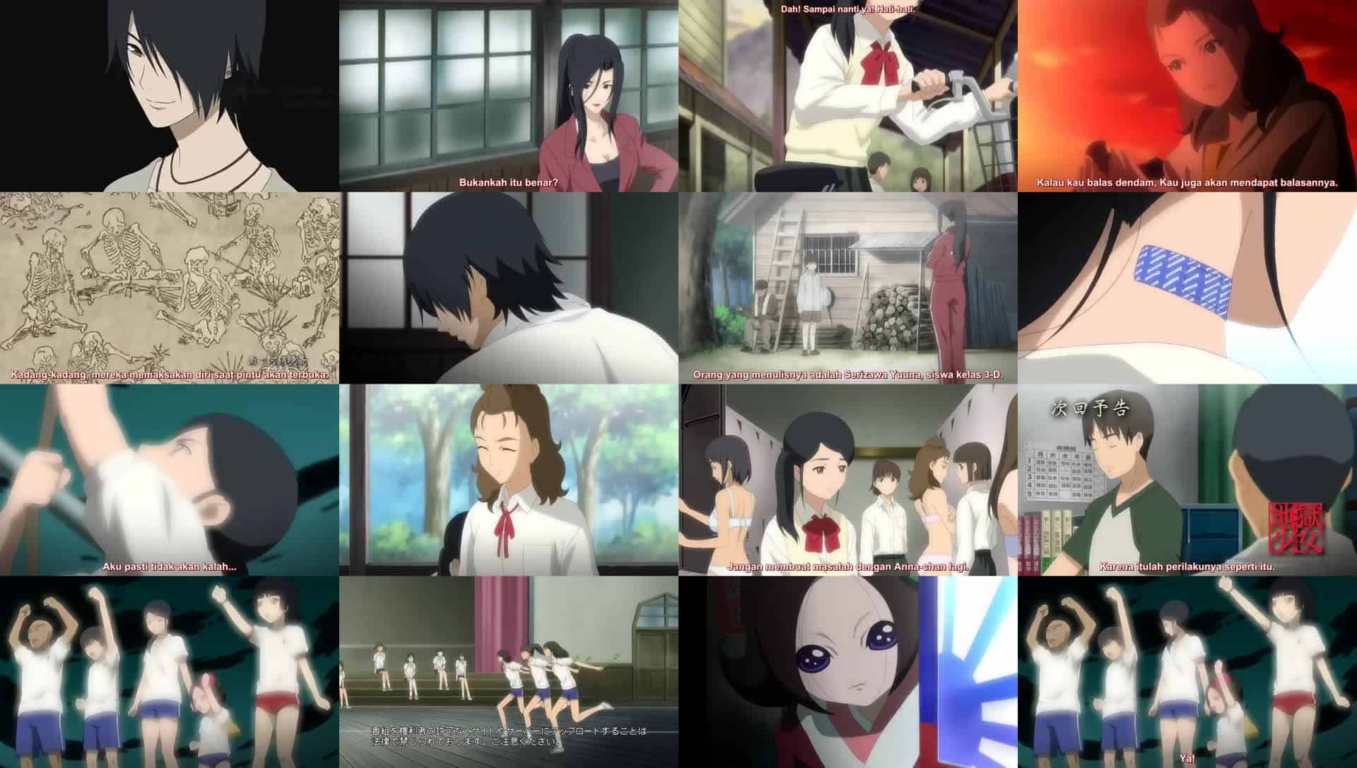 Nonton Anime Jigoku Shoujo Mitsuganae Episode 6 Subtitle Indonesia Gratis Full Movie yang menceritakan tentang Yuuna Serizawa, seorang siswi kelas tiga, menyimpan dendam terhadap Ren dan mencoba mengirimnya ke Neraka, tetapi permintaannya jelas ditolak oleh Ai. Serizawa tergila-gila pada Hone Onna dan menganggap Ren sebagai saingan. Hone Onna mengoreksi kesalahpahamannya dengan menawarkan plester untuk lututnya yang terluka. Yuuna memamerkan plester yang sama di lehernya, memamerkannya kepada teman sekelasnya, Kira Moroboshi, yang juga memiliki rasa sayang yang sama terhadap Hone Onna. Di sekolah, ketika Moroboshi menemukan sepatunya dibuang ke dalam ember kotor, Serizawa terang-terangan berbohong bahwa dia melakukannya atas perintah Hone Onna. Marah besar, Moroboshi mengirim Serizawa ke Neraka. Kemudian, dengan ironis ia mengumumkan bahwa yang ia incar bukan Hone Onna lagi, melainkan Wanyūdō.