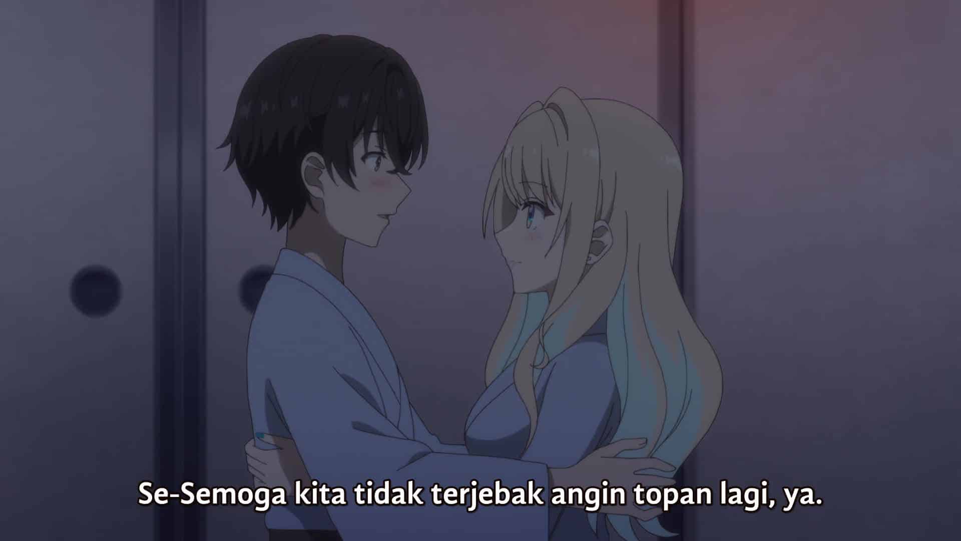 Nonton Anime Keikenzumi na Kimi to, Keiken Zero na Ore ga, Otsukiai suru Hanashi. Episode 5 Subtitle Indonesia Gratis Full Movie yang menceritakan tentang Runa mengajak Ryuto ke pantai untuk merayakan ulang tahun pernikahan mereka yang pertama bulan di bawah sinar matahari. Saat Ryuto yang gugup baru saja mulai bersantai dengan kekasihnya yang berseri-seri dan berbikini, sebuah topan membuat mereka berdua terdampar dan terpaksa bermalam bersama di sebuah penginapan.