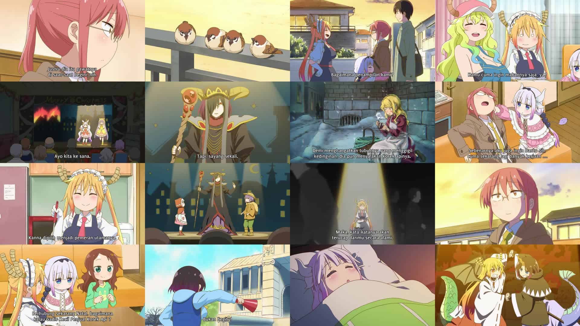 Nonton Anime Kobayashi-san Chi no Maid Dragon Episode 10 Subtitle Indonesia Gratis Full Movie yang menceritakan tentang Musim dingin telah tiba dan Natal akan segera tiba ketika Tohru diminta untuk mementaskan sebuah pertunjukan untuk panti jompo. Tohru dan yang lainnya memutuskan untuk mementaskan sebuah drama agar tidak mengganggu Nona Kobayashi yang sedang sibuk. Namun, tanpa kehadirannya untuk mengendalikan segalanya, drama yang dirancang para naga itu berubah secara tak terduga… Akhirnya, drama itu dipentaskan, dan sementara Nona Kobayashi menyaksikan pertunjukan mereka dengan cemas…