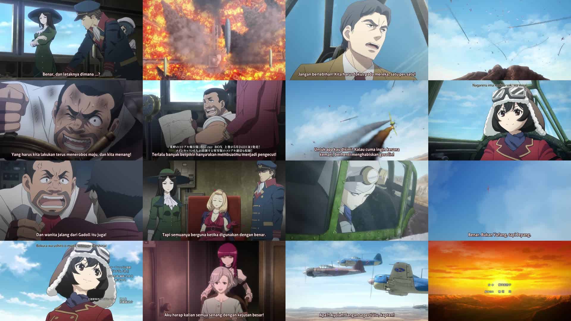 Nonton Anime Kouya no Kotobuki Hikoutai Episode 11 Subtitle Indonesia Gratis Full Movie yang menceritakan tentang Pertarungan sengit? Bukan, ini PERANG sengit karena Korps Penerbangan KOTOBUKI bergabung dalam serangan udara melawan pasukan Isao dan Ikesuka!