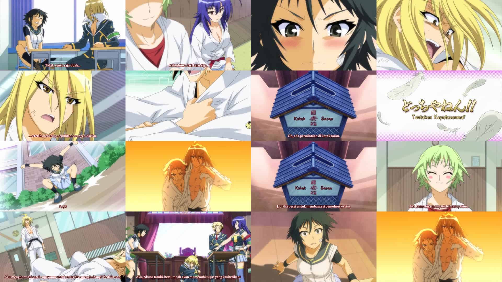 Nonton Cartoon Medaka Box Episode 4 Subtitle Indonesia Gratis Full Movie yang menceritakan tentang Zenkichi dan Akune memulai pertandingan mereka, dan Akune dengan cepat unggul dengan 9 poin dari 10 poin yang dibutuhkan, sementara Zenkichi belum berhasil mendapatkan 1 poin yang dibutuhkannya. Setelah Medaka menyemangatinya, Zenkichi berhasil memenangkan satu poin melawan Akune, dan tetap berada di Dewan Siswa. Karena mereka tidak dapat memiliki “pangeran” yang lebih kuat dari kapten baru, Nekomi-senpai mengeluarkan Akune dari klub judo, dan dia pergi ke dewan siswa, di mana dia mendapatkan tugas pertamanya – membantu seorang senior menulis surat cinta.