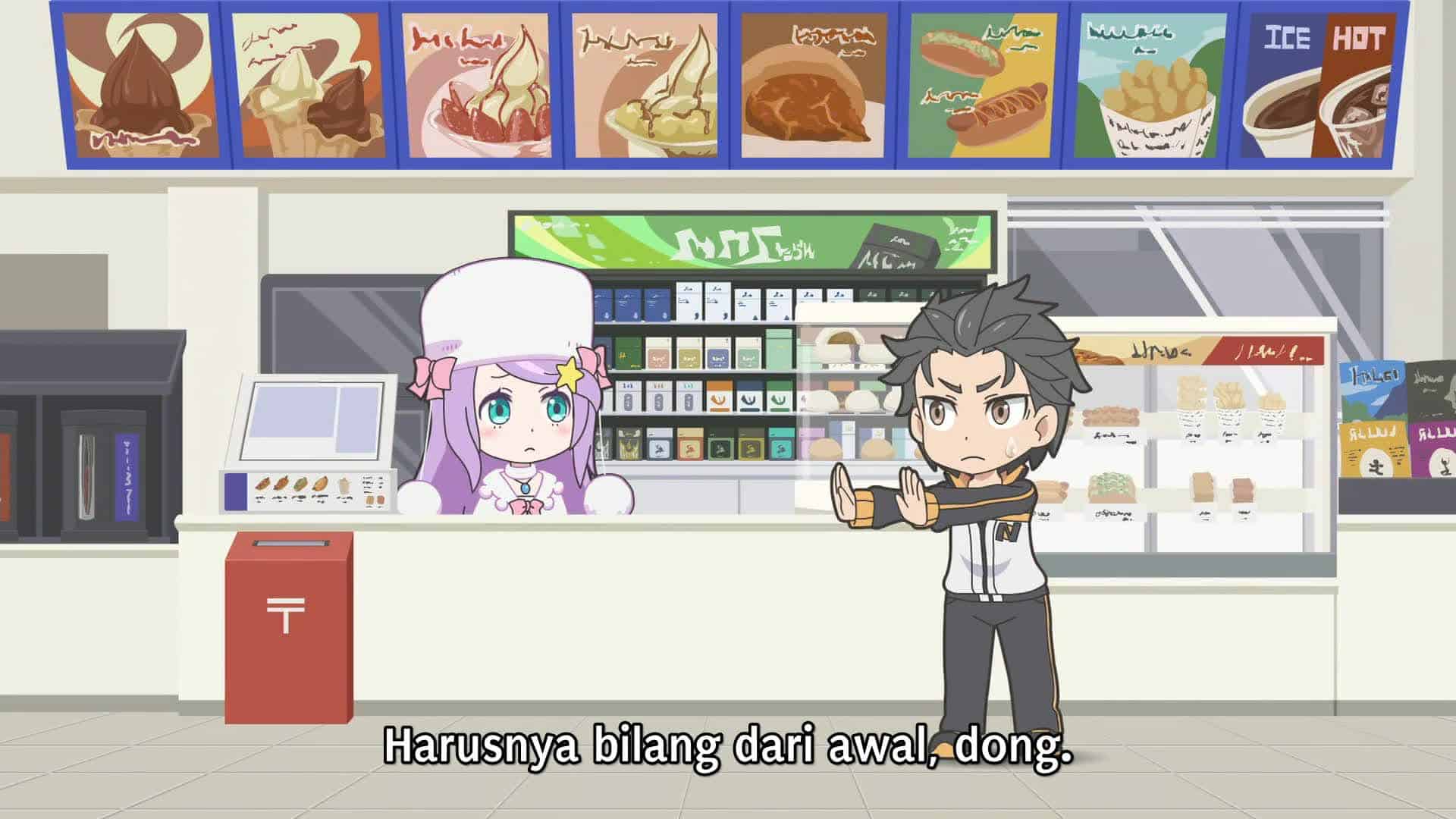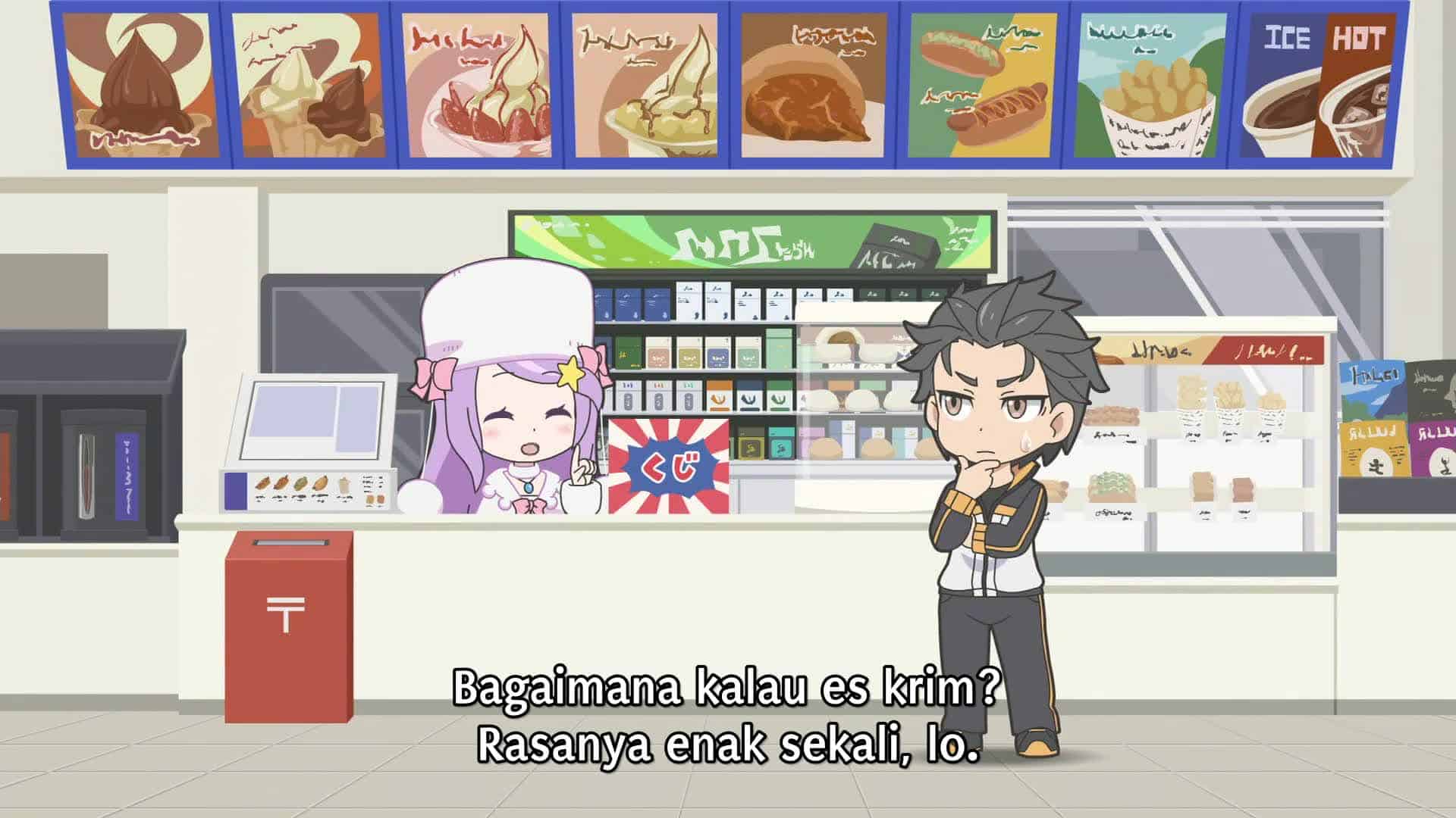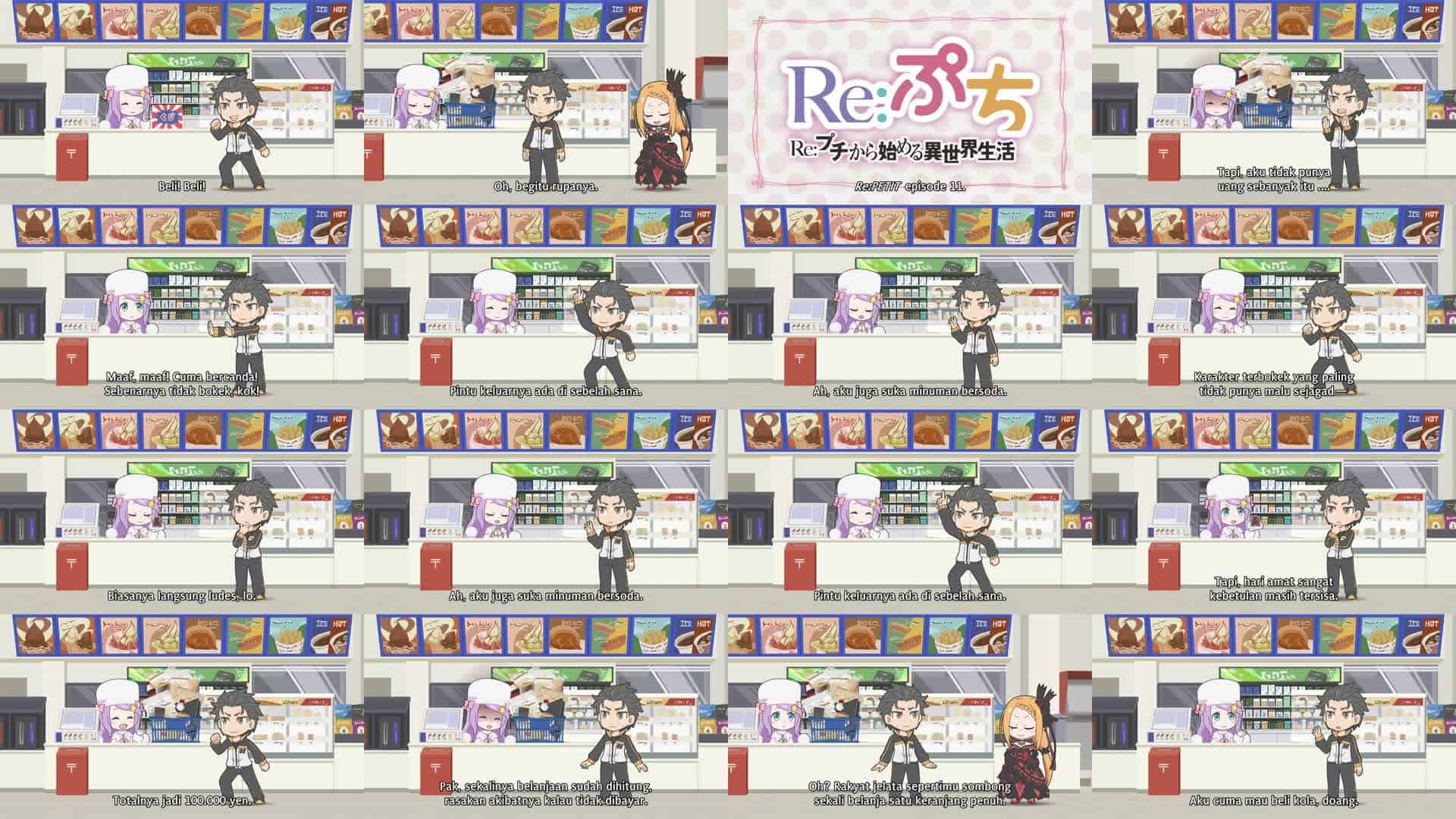 Nonton Anime Re:Petit kara Hajimeru Isekai Seikatsu Episode 11 Subtitle Indonesia Gratis Full Movie yang menceritakan tentang Subaru mengunjungi minimarket untuk membeli minuman, tetapi pemiliknya adalah seorang wanita pebisnis yang sangat cerdik…