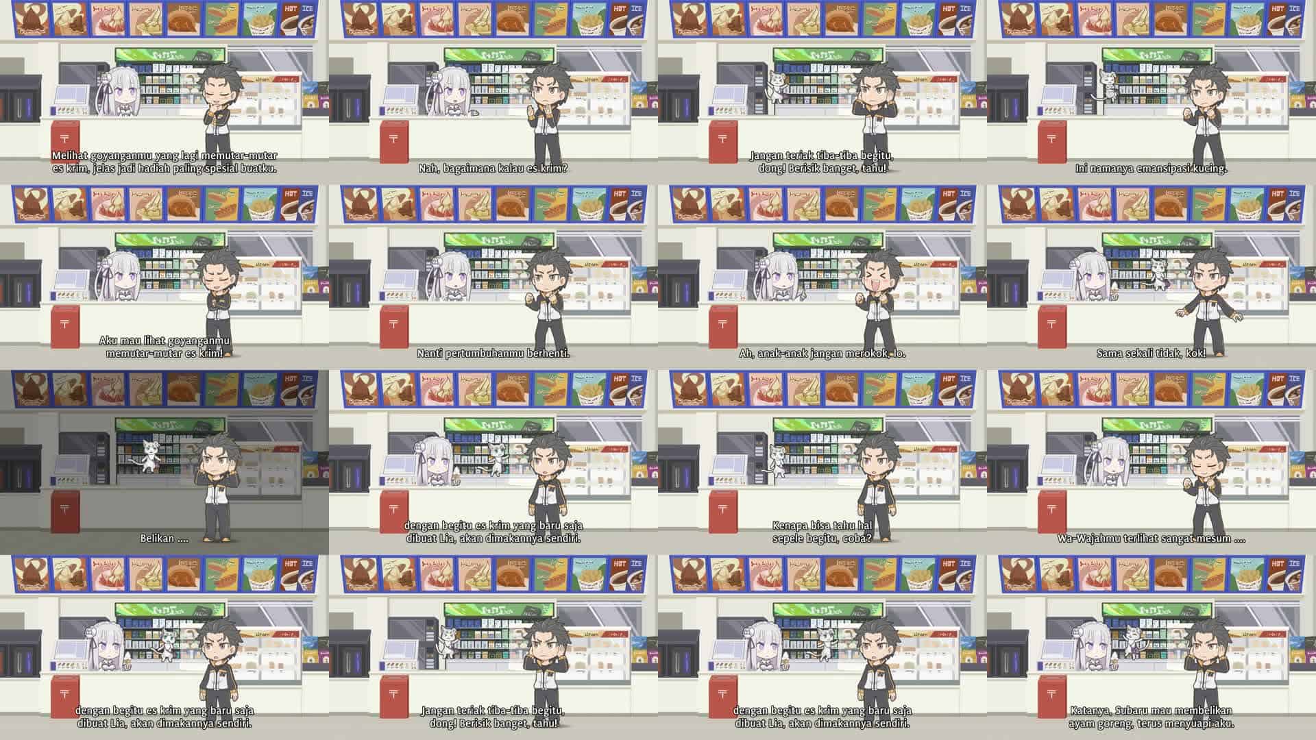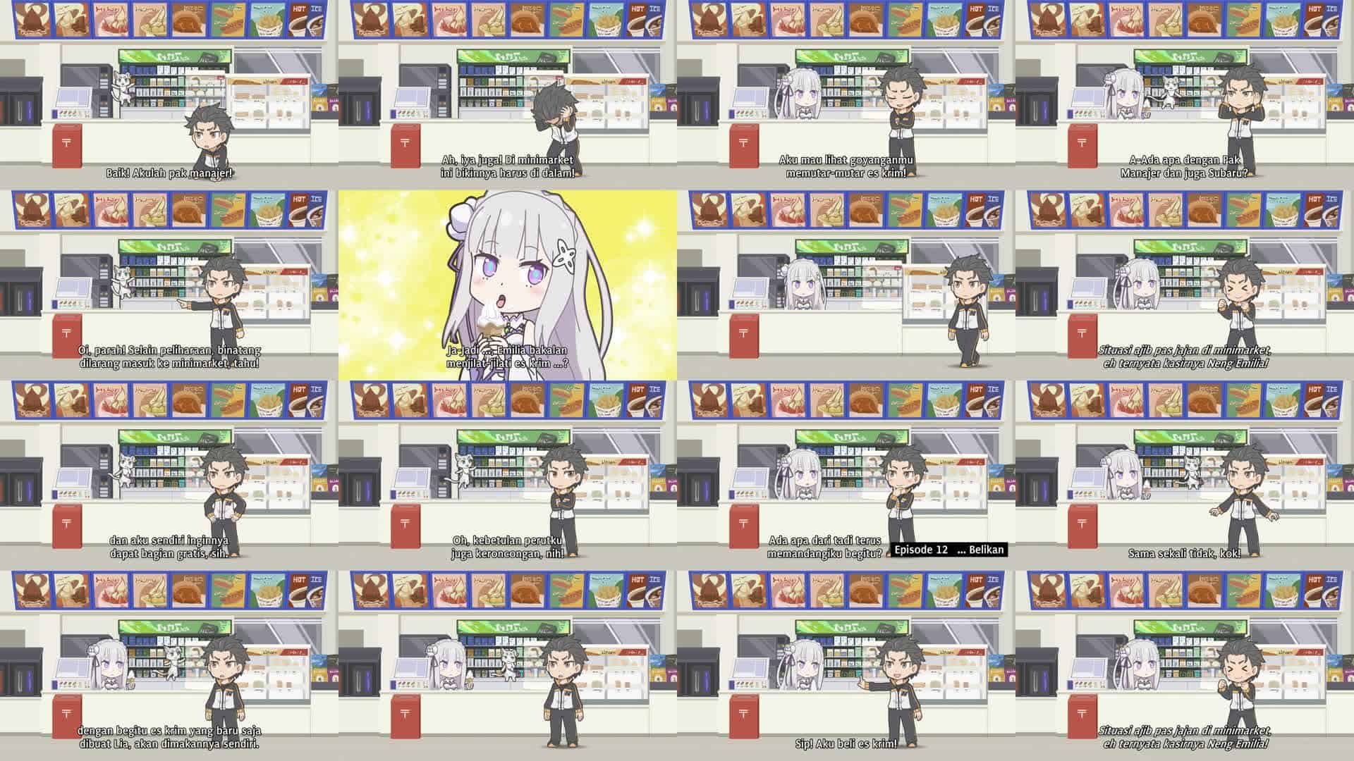 Nonton Anime Re:Petit kara Hajimeru Isekai Seikatsu Episode 12 Subtitle Indonesia Gratis Full Movie yang menceritakan tentang Subaru kembali ke minimarket…dan kali ini Emilia berdiri di belakang konter! Inilah situasi yang selama ini ia tunggu-tunggu!