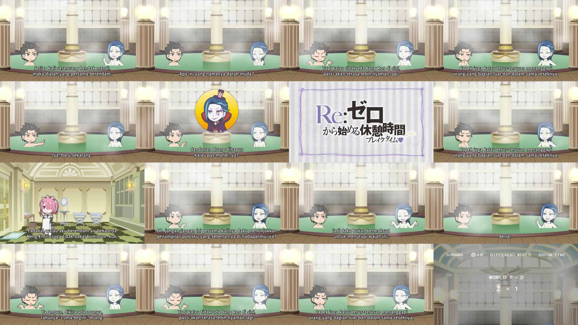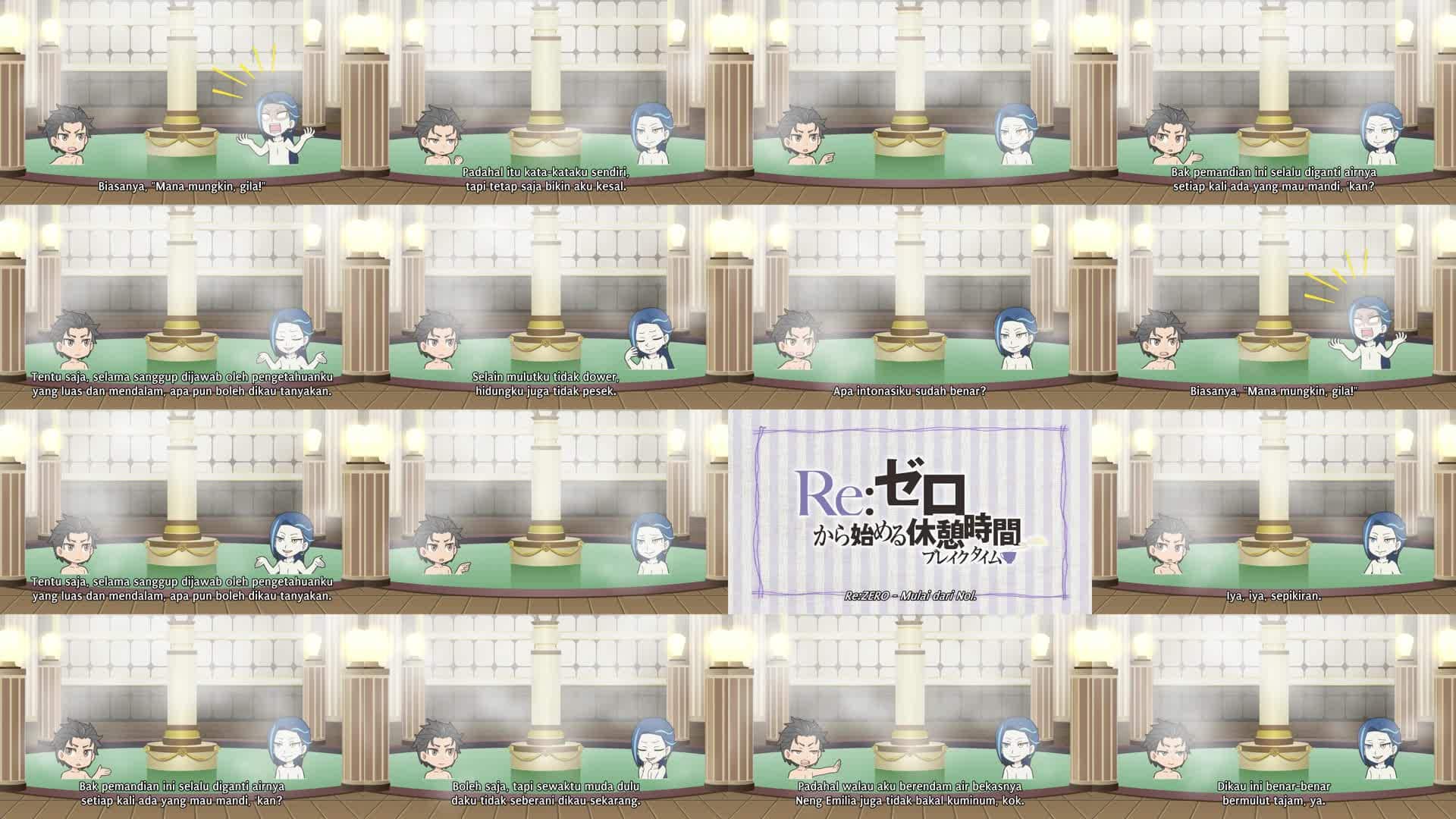 Nonton Anime Re:Zero kara Hajimeru Break Time Episode 5 Subtitle Indonesia Gratis Full Movie yang menceritakan tentang Roswaal dan Subaru mengobrol sambil berbagi kamar mandi mewah di mansion tersebut.