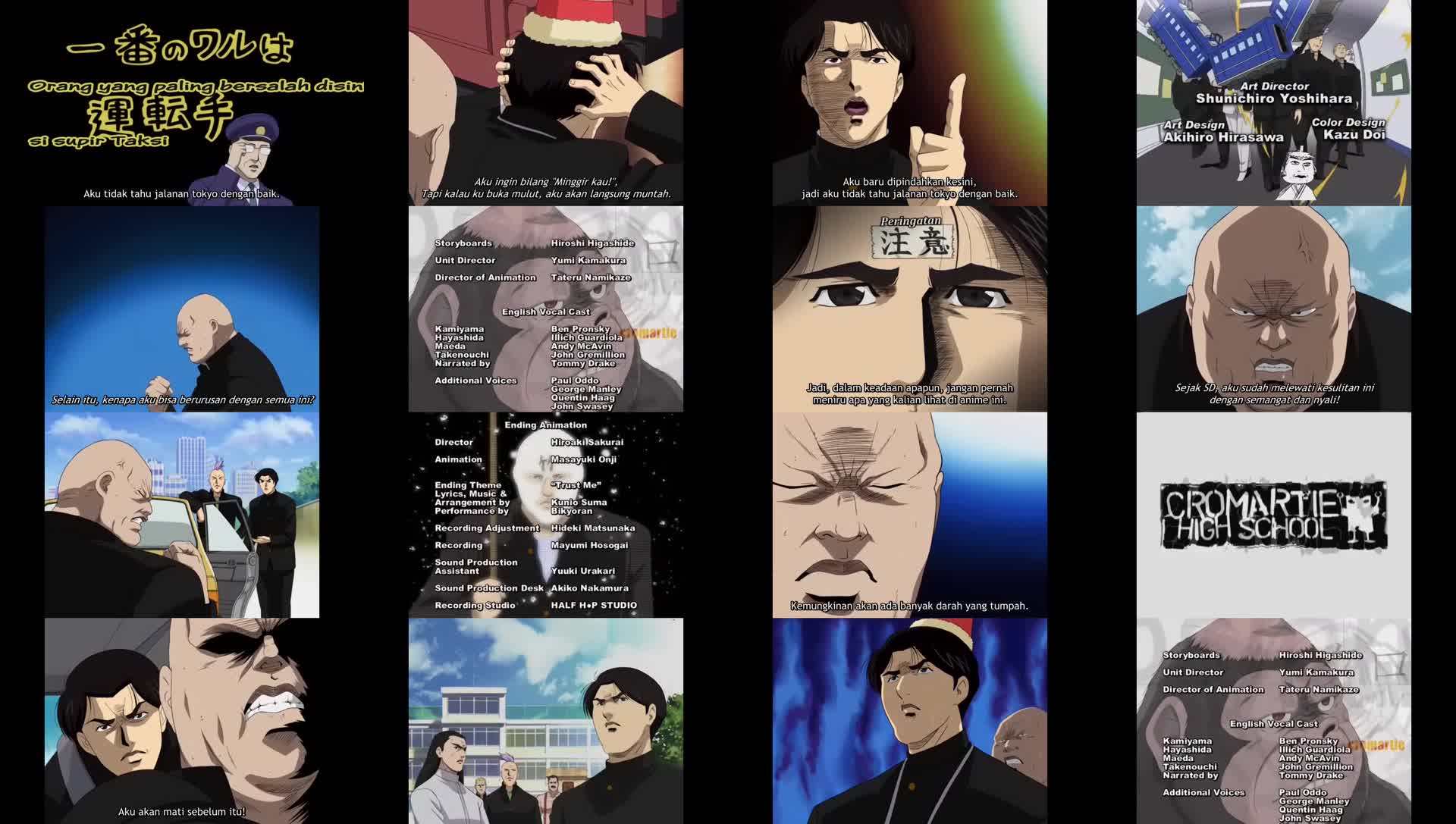 Nonton Anime Sakigake!! Cromartie Koukou Episode 5 Subtitle Indonesia Gratis Full Movie yang menceritakan tentang Yutaka Takenouchi adalah siswa kelas satu yang paling dihormati sekaligus ditakuti di SMA Cromartie. Dia benar-benar tak terkalahkan dalam pertempuran, sehingga tidak ada yang berani menantangnya atau membuatnya marah. Namun dia memiliki kelemahan – dia terlalu mudah pusing. Apa yang akan terjadi ketika dia melakukan perjalanan ke Nikkou? Dan akankah dia mampu menyelamatkan Maeda setelah menghabiskan waktu yang begitu lama di dalam taksi?!