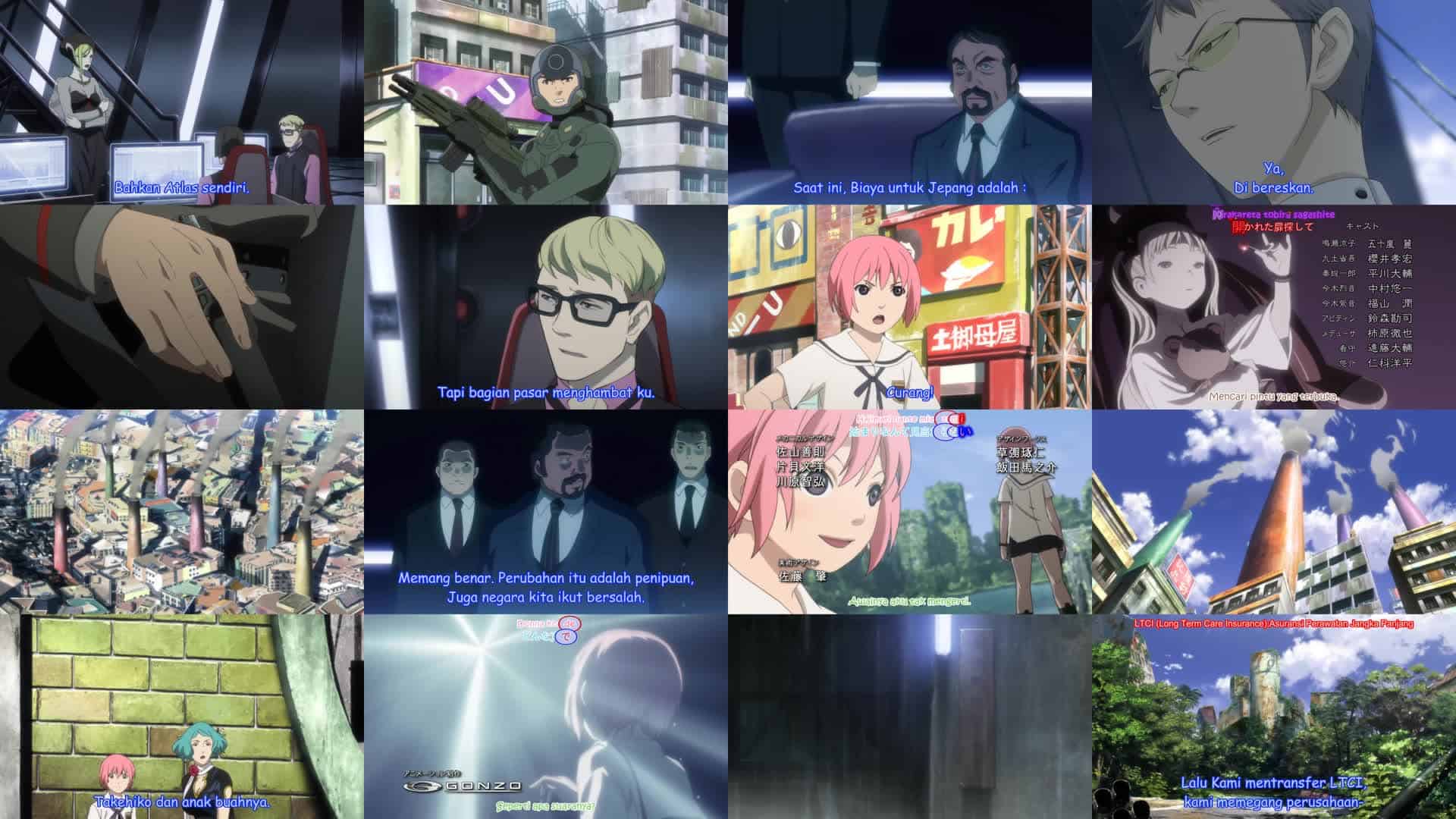 Nonton Anime Shangri-La Episode 1 Subtitle Indonesia Gratis Full Movie yang menceritakan tentang Seorang gadis muda, Kuniko Hojo, dibebaskan dari pusat penahanan perempuan. Ia dijemput oleh teman-temannya serta para walinya, Momoko, Miiko, dan Takehiko, dan kembali ke rumahnya di Duomo. Kuniko sedang dipersiapkan untuk menjadi pemimpin masa depan Metal Age, sebuah organisasi perlawanan yang menentang kebijakan drastis pemerintah tentang lingkungan. Seorang tokoh otoritas tinggi, Lady Ryoko, diberitahu tentang pergerakan Kuniko. Mikuni, seorang gadis yang lahir dari keluarga bangsawan, menggunakan jalan raya Atlas sebagai tempat bermainnya. Karin Ishida, seorang jenius komputer muda, secara legal memeras seorang politisi dari negara dunia ketiga untuk menandatangani kontrak perbankan dengan perusahaannya di Atlas, karena melebihi batas emisi karbon. Takehiko dengan sembrono membakar bahan bakar untuk merayakan kembalinya Kuniko, sebagai bentuk pembangkangan terhadap pemerintah. Korps Keamanan Atlas dan militer tiba-tiba menyerang Duomo. Kuniko dan anggota Metal Age membela kota mereka. Mereka menyadari bahwa Atlas menganggap mereka bertanggung jawab atas suatu insiden yang tidak diketahui. Ketika Kuniko menggunakan bumerangnya pada Mayor Kunihito Kusanagi, bumerang itu mengenai belatinya, yang menyebabkan Kuniko, Mikuni, dan belati suci Kunihito beresonansi. Sesaat kemudian, titik-titik hitam misterius muncul di atas Duomo dan mulai menghujani semua orang, menyebabkan kehancuran massal.