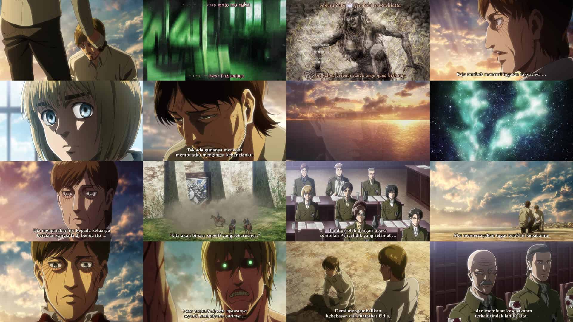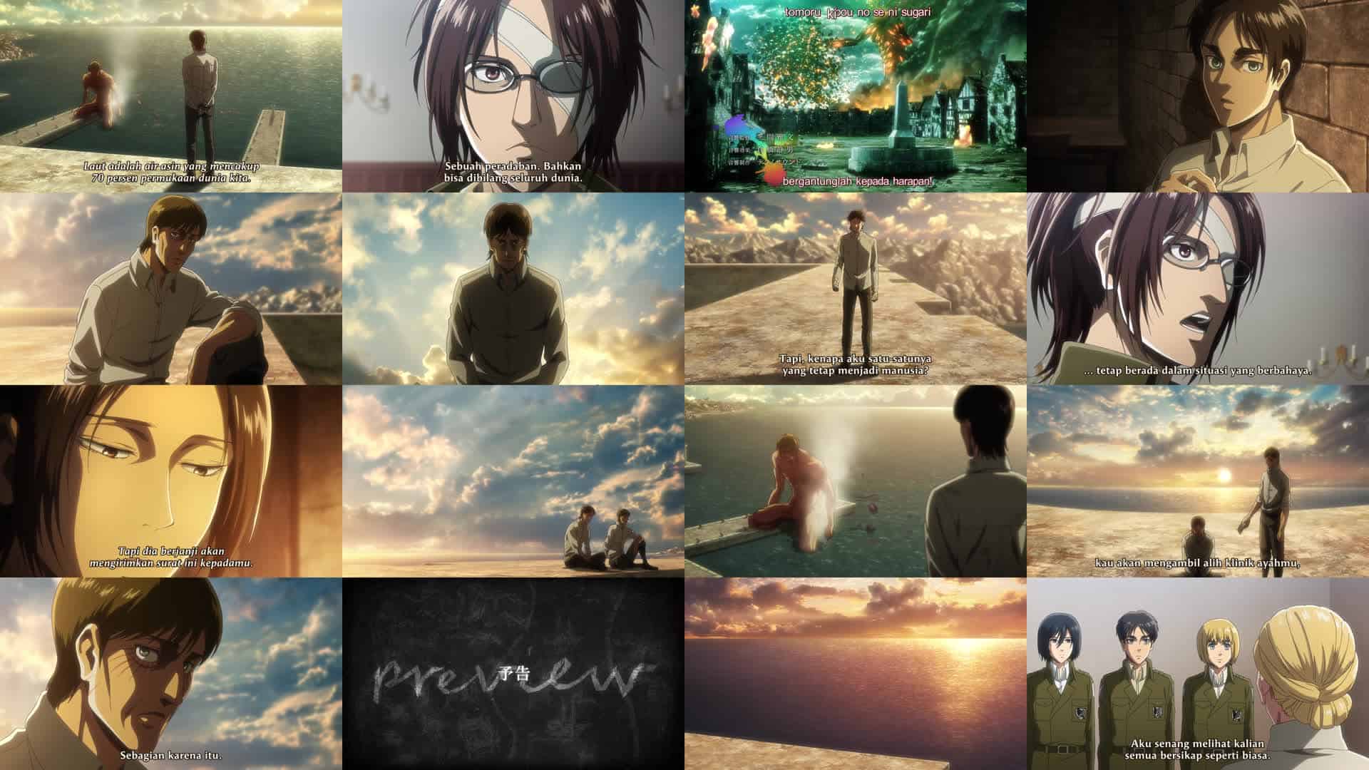 Nonton Anime Shingeki no Kyojin Season 3 Part 2 Episode 9 Subtitle Indonesia Gratis Full Movie yang menceritakan tentang Eren mengetahui kebenaran tentang kekuatan Titannya, ayahnya, dan dirinya sendiri. Pasukan Pengintai mengadakan pertemuan untuk membahas masa depan Eldia dengan semua informasi baru yang mereka peroleh.