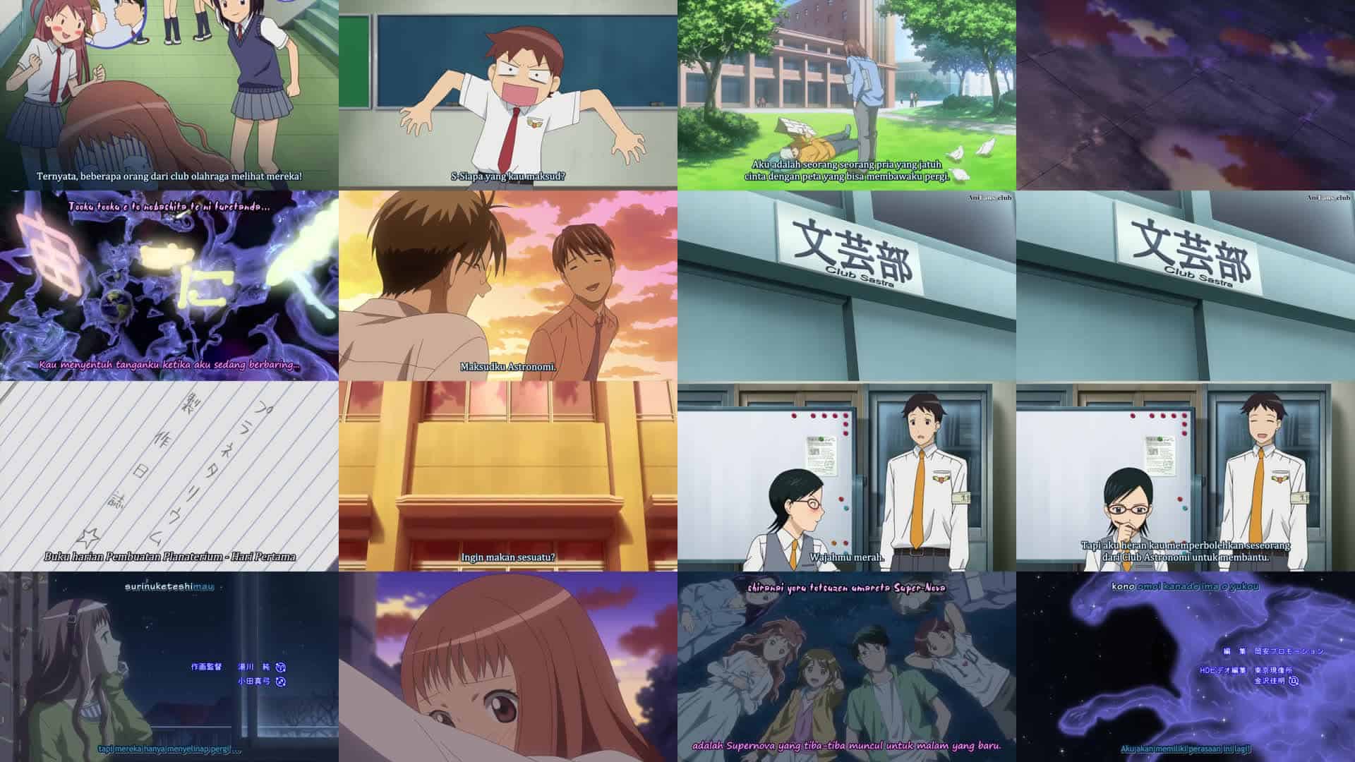 Nonton Anime Sora no Manimani Episode 7 Subtitle Indonesia Gratis Full Movie yang menceritakan tentang Meskipun awalnya hendak menolak, Saku akhirnya setuju untuk membantu klub sastra. Mihoshi bersikap ceria tanpa kehadirannya, tetapi tetap merasa terganggu oleh ketidakhadirannya. Sementara itu, klub astronomi sibuk membuat planetarium. Suatu hari setelah sekolah, Mihoshi tiba-tiba memeluk Saku, dan rumor menyebar setelah beberapa anggota klub atletik melihat mereka bersama Soma. Fumie khawatir Saku terlalu banyak membantu klub sastra dan mungkin khawatir dengan rumor tentang dirinya, Mihoshi, dan Soma. Hime memberi Saku jurnal yang telah ia susun tentang pembangunan planetarium. Saku merasa kembali bersemangat tentang klub astronomi dan kembali membantu.