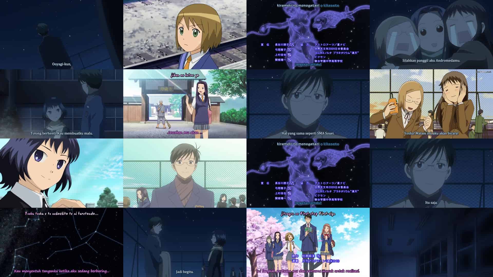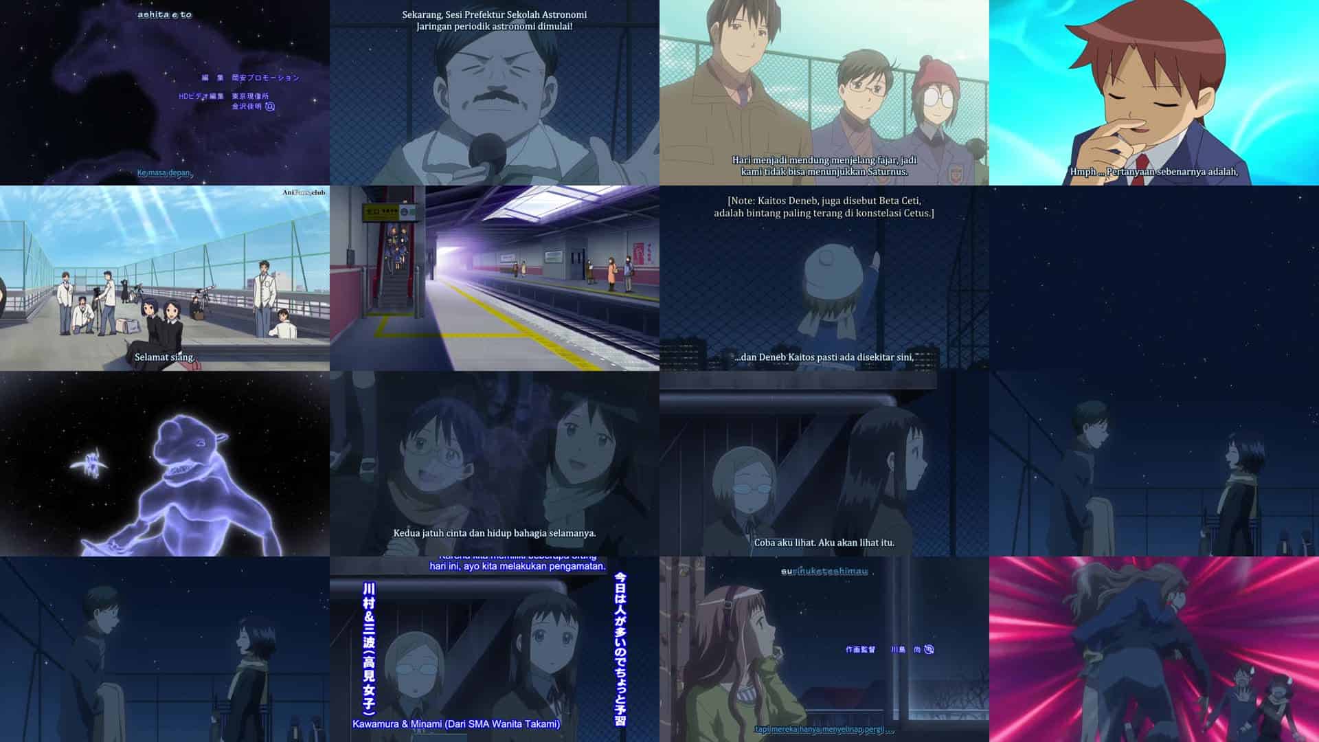 Nonton Anime Sora no Manimani Episode 9 Subtitle Indonesia Gratis Full Movie yang menceritakan tentang Mihoshi dan anggota lainnya sangat antusias dengan Konferensi Pengamatan Bintang Musim Gugur, dan terkejut dengan ukuran SMA Nogishiro beserta jumlah anggota klub astronomi mereka. Setelah matahari terbenam, semua orang dibagi menjadi beberapa kelompok dan prosesnya dijelaskan oleh ketua klub astronomi Nogishiro, Ayumi Ōmi; setiap kelompok bebas mengamati bintang hingga bulan terbenam, setelah itu setiap kelompok akan mulai menghitung bintang yang terlihat di sebagian langit untuk mengukur kecerahan langit secara keseluruhan. Ayumi meminta Saku untuk membantu berpatroli di sekitar sekolah dan mereka bertemu Hime dan seorang siswa kelas dua bernama Musa setelah Hime bereaksi berlebihan dan mengira Musa mencoba menyerangnya. Setelah itu, semua orang kembali ke atap karena bulan telah terbenam, dan Ayumi mengaku kepada Saku bahwa klub astronominya sebenarnya hanya memiliki sembilan anggota dan sebagian besar anggota lainnya berasal dari klub lain. Takeyasu Roma menceritakan mitos langit musim gugur yang disukai semua orang. Ayumi kemudian menemui Roma dan mengingatkannya bahwa mereka pernah menjadi anggota klub astronomi yang sama di Museum Sains Goshima.