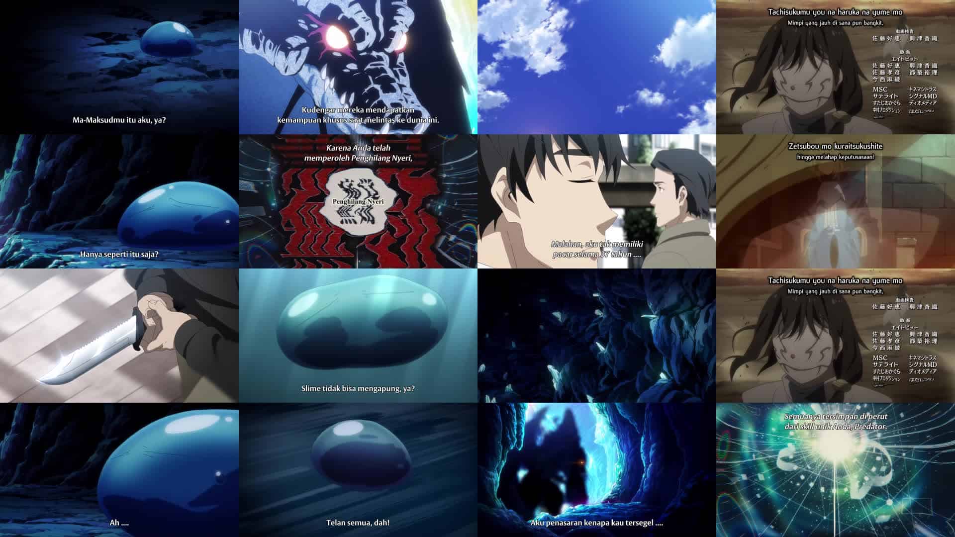 Nonton Anime Tensei shitara Slime Datta Ken Episode 1 Subtitle Indonesia Gratis Full Movie yang menceritakan tentang Mikami Satoru, seorang pengusaha, ditikam oleh seorang penjahat di jalan dan tewas. Ketika ia sadar kembali dalam kegelapan, ia mendapati dirinya telah bereinkarnasi sebagai slime! Karena tidak ada hal lain yang lebih baik untuk dilakukan, ia menghabiskan waktunya melahap semua tumbuhan langka dan bijih berharga yang ditemuinya. Saat melakukannya, ia bertemu dengan Naga Badai Veldora, yang disegel di gua ini 300 tahun yang lalu oleh kemampuan “Penjara Tanpa Batas” milik seorang pahlawan. Awalnya ia takut, tetapi saat mereka berbicara, ia berteman dengan Veldora yang telah lama terisolasi.