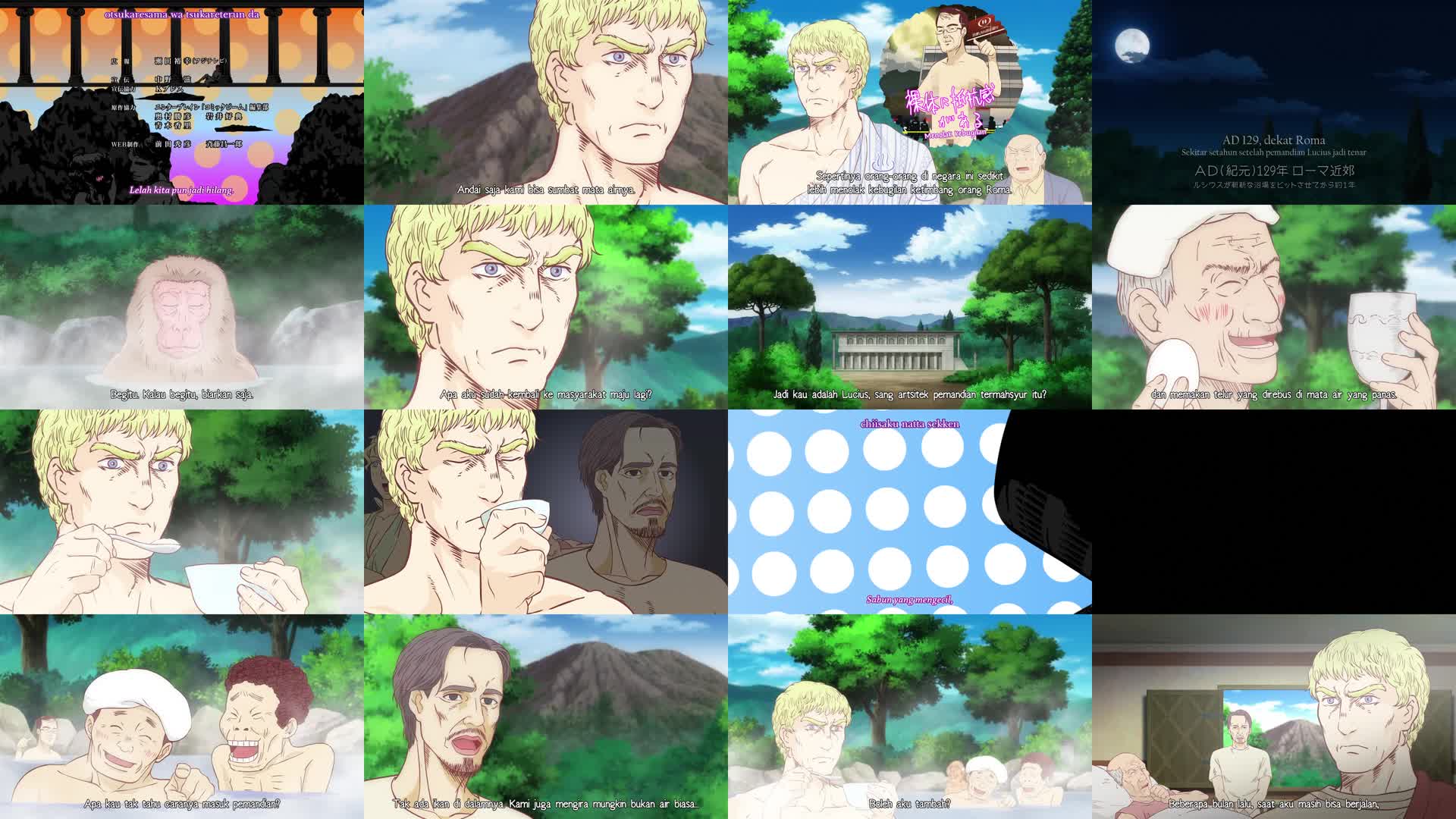 Nonton Anime Thermae Romae Episode 2 Subtitle Indonesia Gratis Full Movie yang menceritakan tentang Setahun kemudian, Lucius ditugaskan oleh seorang pria yang sakit untuk membangun pemandian luar ruangan di dekat Vesuvius. Saat memeriksa sumur air panas, Lucius sekali lagi dikirim ke Jepang modern, kali ini berakhir di mata air panas, di mana ia berkesempatan mencicipi telur rebus dan sake. Inovasi-inovasi ini membantu memulihkan kesehatan pria tua tersebut.